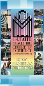 Download 2026 Directory. The Chamber publishes the Greater Miracle Mile Business Directory annually; listing the names, addresses, numbers, web contact and categories of member businesses. The Directory is distributed to all Chamber members, area businesses, residents and visitors upon request. The website also contains an online Directory that is updated monthly. It is a primary resource for Chamber Members and non-members to finding quality businesses in our area. The statement, “You’re a member in good standing” is important to every consumer who inquires about your business.  A Greater Miracle Mile Chamber Member is an instant reference to your consumers looking for an outstanding member of this community.  View 2026 Directory.